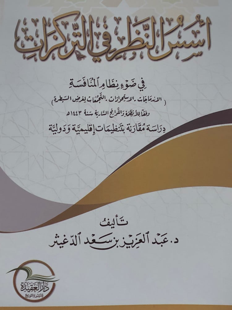 اسس النظر في التركزات في ضوء نظام المنافسة ( الاندماجات - الاستحواذات - التجمعات لغرض السيطرة ) / غلاف