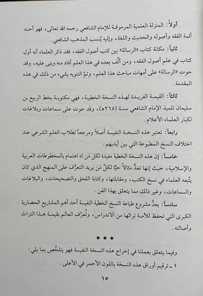 الرسالة في اصول الفقه للامام الشافعي نسخة تلميذه الربيع بن سليمان المرادي البصري بخطه - مجلد كبير مقاس 33*24