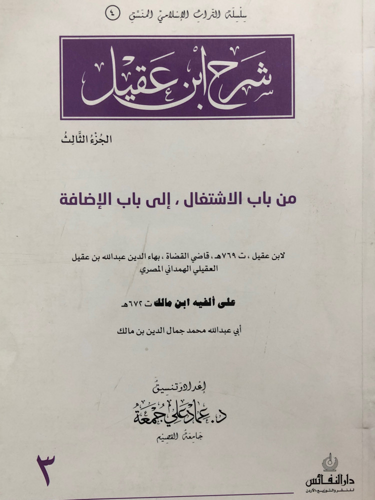 شرح ابن عقيل ج/ 3 من باب الاشتغال الى باب الاضافة / غلاف ( منسق )