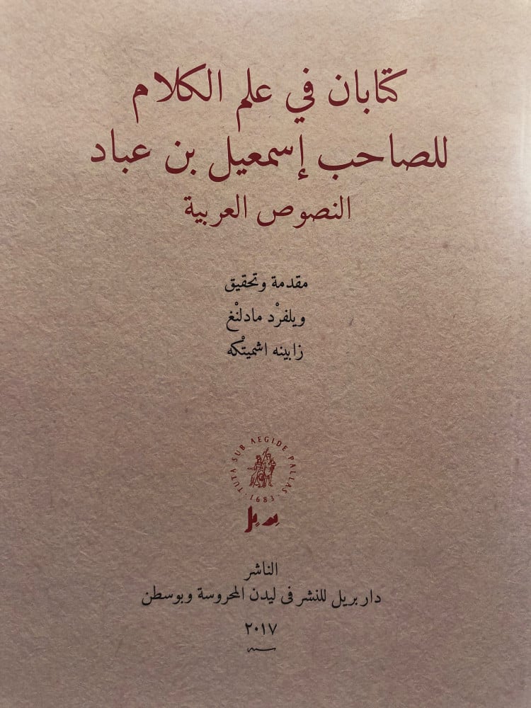 كتابان في علم الكلام للصاحب اسمعيل بن عباد النصوص العربية / غلاف
