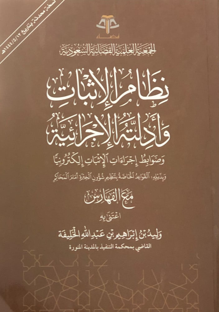 نظام الاثبات وادلته الاجرائية وضوابط اجراءات الاثبات إلكترونياً - وبذيله القواعد الخاصة بتنظيم شؤون الخبرة اما المحاكم / غلاف
