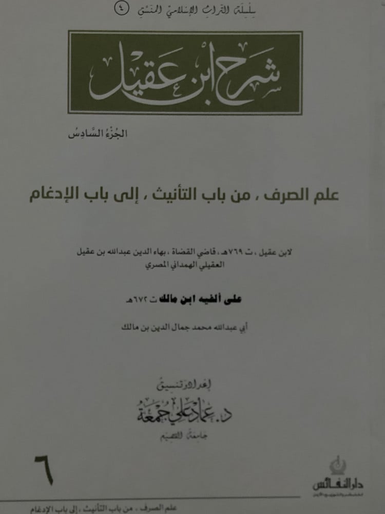 شرح ابن عقيل ج/6 من علم الصرف , من باب التأنيث , الى باب الادغام ( منسق ) / غلاف