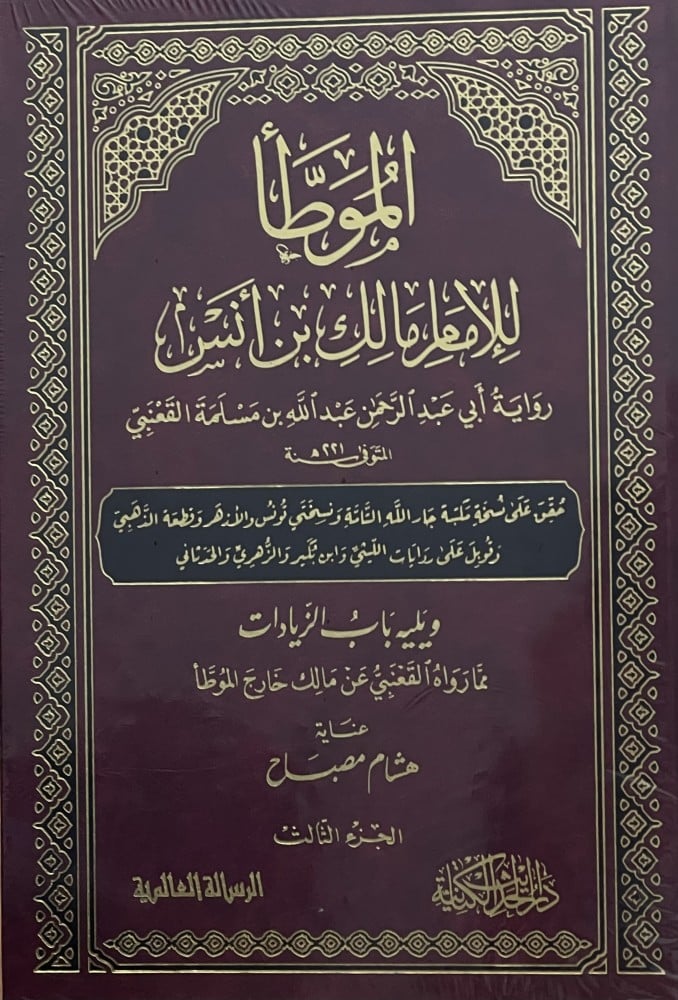 الموطأ للامام مالك بن انس - رواية عبدالله بن مسلمة القعنبي - ويليه باب الزيادات مما رواه القعنبي عن مالك خارج الموطأ / 3 مجلدات