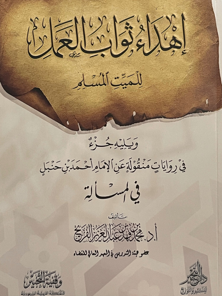 اهداء ثواب العمل للميت المسلم ويليه جزء في روايات منقولة عن الامام احمد بن حنبل في المسألة / غلاف