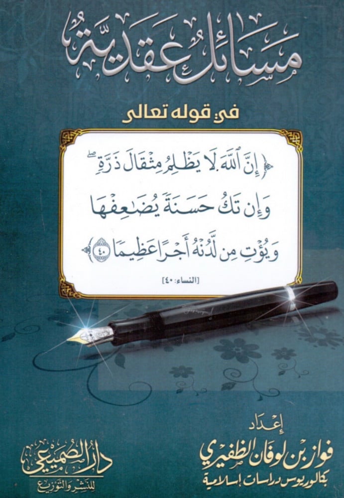 مسائل عقدية في قوله تعالى ( إِنَّ ٱللَّهَ لَا يَظْلِمُ مِثْقَالَ ذَرَّةٍۢ ۖ وَإِن تَكُ حَسَنَةً يُضَٰاعِفْهَا وَيُؤْتِ مِن لَّدُنْهُ أَجْرًا عَظِيمًا ) / غلاف