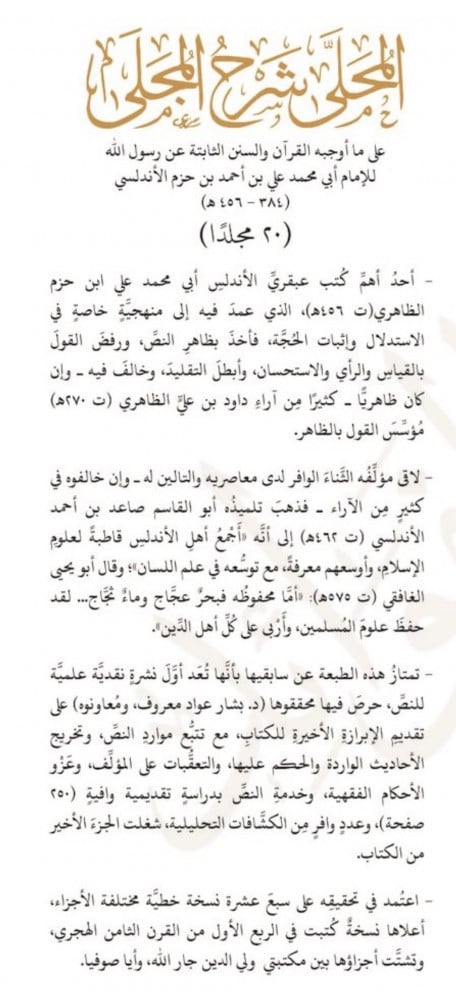 المحلى شرح المجلى - تحقيق بشار عواد 20 مجلد