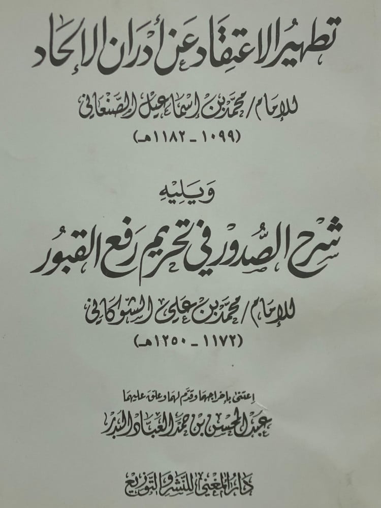تطهير الاعتقاد عن ادران الالحاد ويليه شرح الصدور في تحريم رفع القبور / غلاف